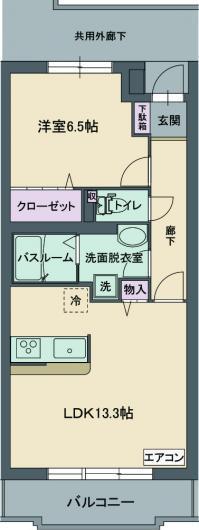 | 間取り詳細 | 洋室(6.5帖)、LDK(13.3帖) | ||