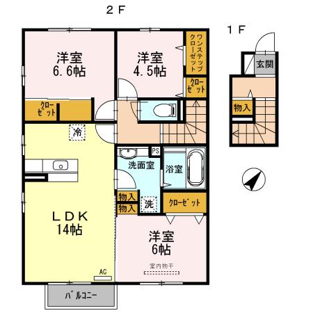 アパート エストレージャ A棟(2LDK/2階) | |||||||