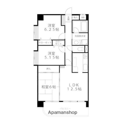 | 間取り詳細 | 和室(6帖)、洋室(6.2帖)、洋室(5.1帖)、LDK(12.5帖) | ||