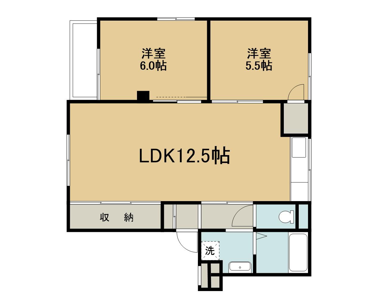 | 間取り詳細 | 洋室(6帖)、洋室(5.5帖)、LDK(12.5帖) | ||