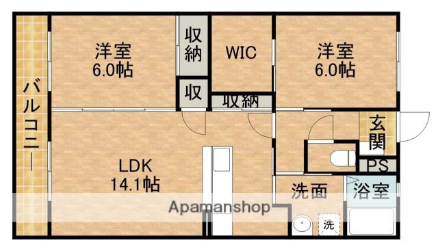 | 間取り詳細 | LDK(14.1帖)、洋室(6帖)、洋室(6帖) | ||