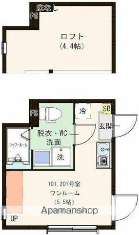 | 設備 | バス・トイレ別、テレビドアホン、インターネット対応、システムキッチン、温水洗浄便座、角部屋、フローリング、ロフトあり、コンロ:ガス、デザイナーズ、インターネット使用料無料、シャワー、冷蔵庫あり、給湯、冷房、洗濯機:室内、閑静な住宅街 | ||