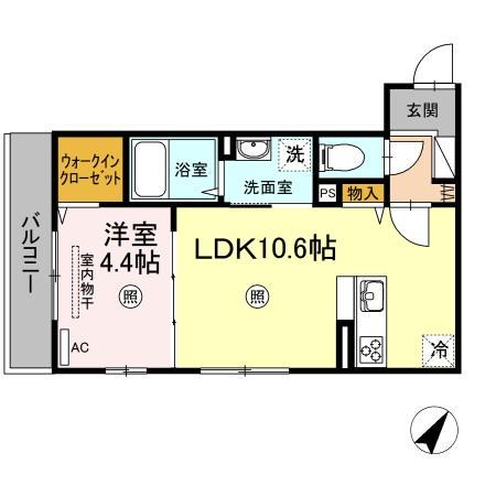 | 間取り詳細 | 洋室(4.4帖)、LDK(10.6帖) | ||