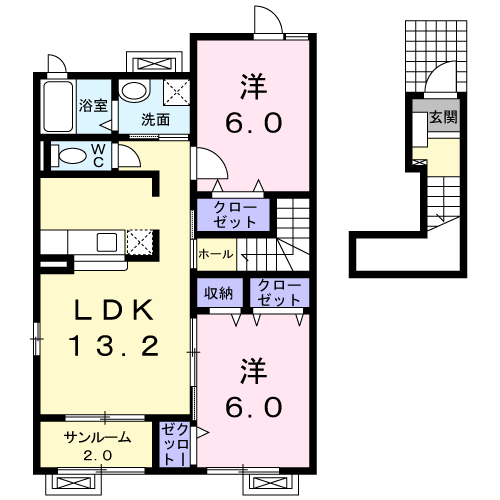 アパート シャーメゾンMⅡ(2LDK/2階) | |||||||