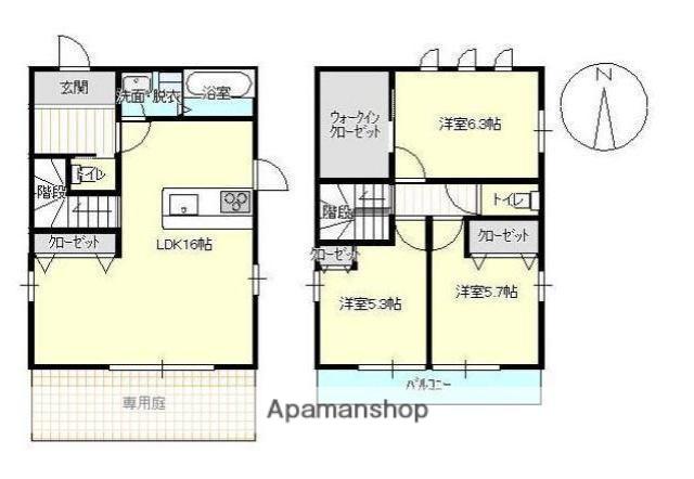 | 間取り詳細 | 洋室(6.3帖)、洋室(5.7帖)、洋室(5.3帖)、LDK(16帖) | ||