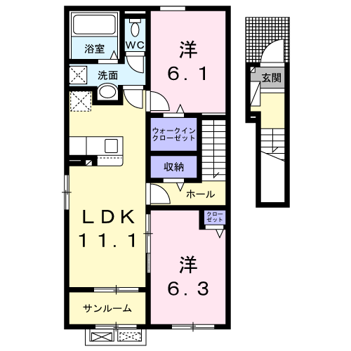 アパート イル・パラッツオモデルノA(2LDK/2階) | |||||||