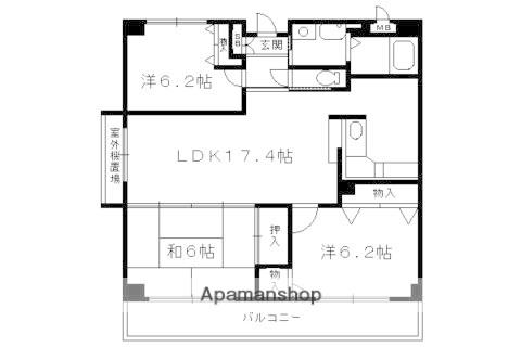 | 間取り詳細 | LDK(17.4帖)、洋室(6.2帖)、洋室(6.2帖)、和室(6帖) | ||