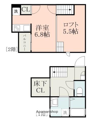 | 設備 | バス・トイレ別、テレビドアホン、浴室乾燥機、インターネット対応、温水洗浄便座、バルコニー、フローリング、ロフトあり、コンロ:ガス、CSアンテナ、BSアンテナ、インターネット使用料無料、シャワー、給湯、洗濯機:室内 | ||