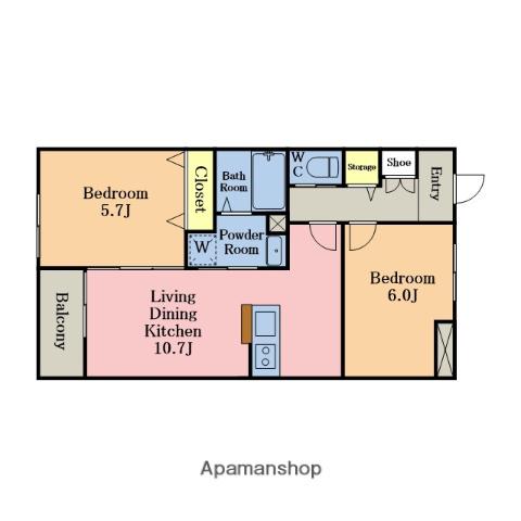 | 間取り詳細 | LDK(10.7帖)、洋室(6帖)、洋室(5.7帖) | ||