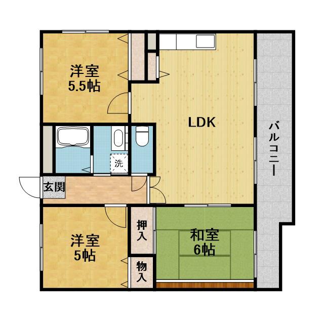 | 設備 | バス・トイレ別、角部屋、バルコニー、CATV、洗濯機:室内 | ||