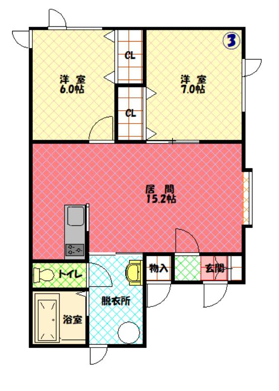 | 間取り詳細 | LDK(15.2帖)、洋室(7帖)、洋室(6帖) | ||