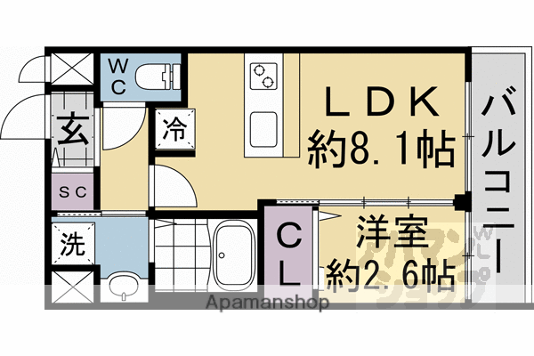 | 間取り詳細 | LDK(8.1帖)、洋室(2.6帖) | ||