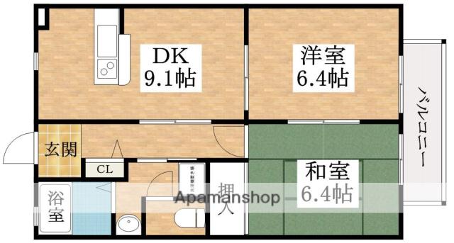 | 間取り詳細 | 洋室(6.4帖)、和室(6.4帖)、DK(9.1帖) | ||
