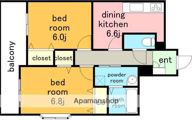 | 間取り詳細 | 洋室(6.8帖)、洋室(6帖)、DK(6.6帖) | ||
