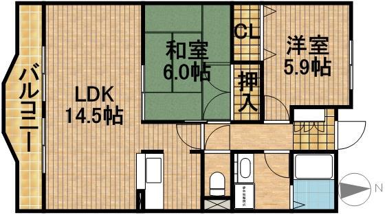 | 間取り詳細 | LDK(14.5帖)、洋室(5.9帖)、和室(6帖) | ||
