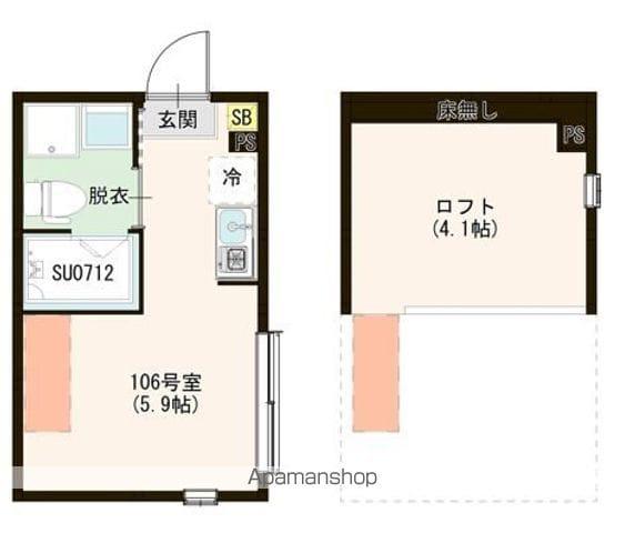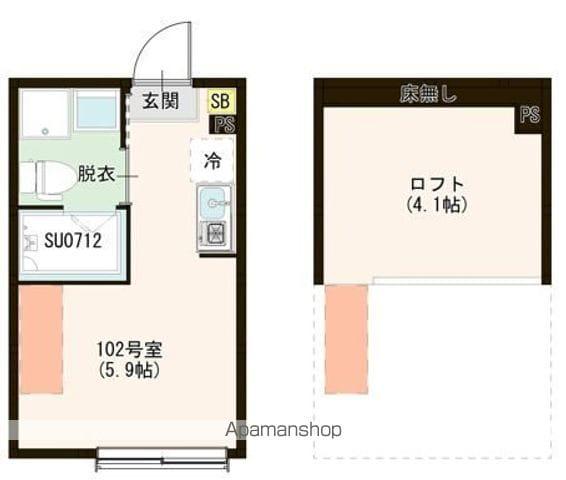 | 設備 | バス・トイレ別、テレビドアホン、宅配ボックス、インターネット対応、システムキッチン、温水洗浄便座、フローリング、ロフトあり、コンロ:ガス、BSアンテナ、インターネット使用料無料、シャワー、給湯、冷房、洗濯機:室内 | ||
