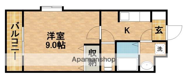 | 間取り詳細 | 洋室(9帖)、K(3帖) | ||