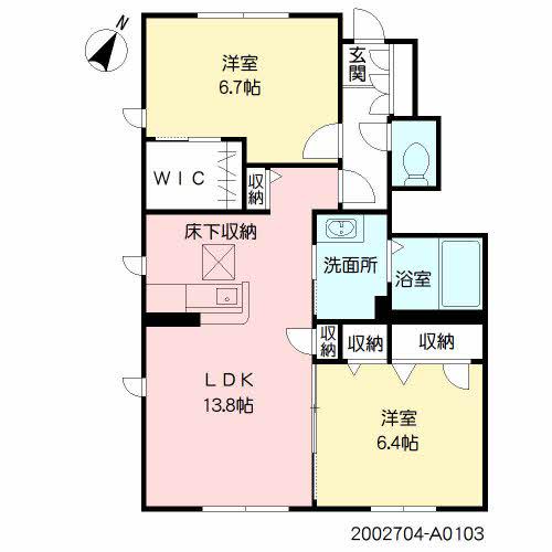 | 間取り詳細 | LDK(13.8帖)、洋室(6.4帖)、洋室(6.7帖) | ||