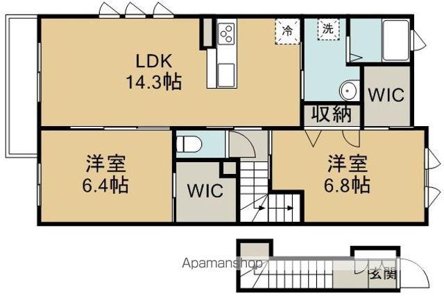 | 間取り詳細 | 洋室(6.4帖)、洋室(6.8帖)、LDK(14.3帖) | ||