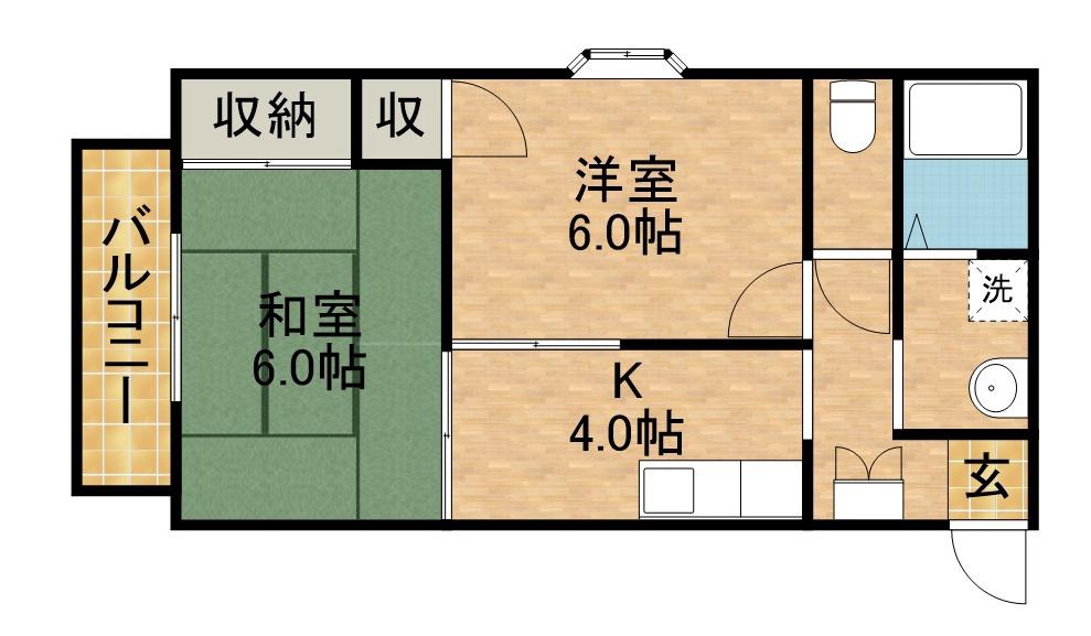 | 間取り詳細 | 洋室(6帖)、和室(6帖)、K(4帖) | ||