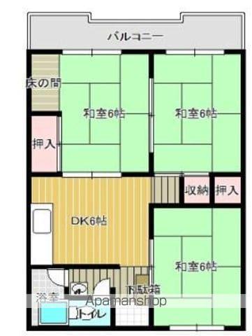 | 間取り詳細 | DK(6帖)、和室(6帖)、和室(6帖)、和室(6帖) | ||