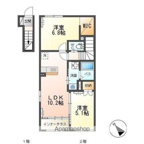 アパート 高尾崎 NEW TOWN LA・TERRE A(2LDK/2階) | |||||||