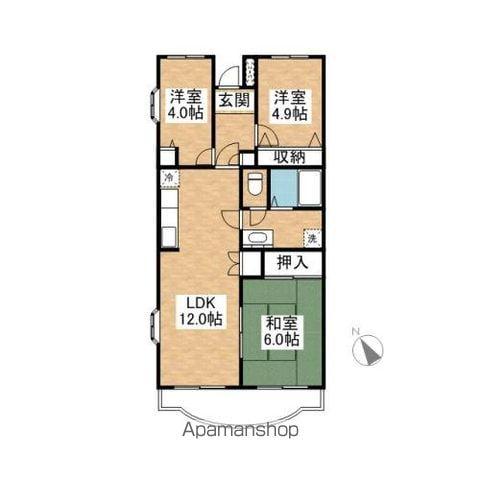 | 間取り詳細 | 和室(6帖)、洋室(4帖)、洋室(4.9帖)、LDK(12帖) | ||