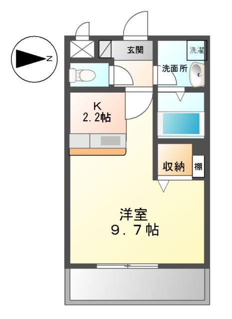 | 間取り詳細 | K(2.2帖)、洋室(9.7帖) | ||