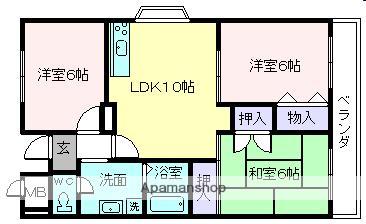 | 間取り詳細 | LDK(10帖)、和室(6帖)、洋室(6帖)、洋室(6帖) | ||