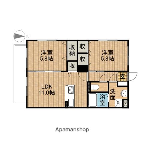 | 間取り詳細 | 洋室(5.8帖)、洋室(5.8帖)、LDK(11帖) | ||