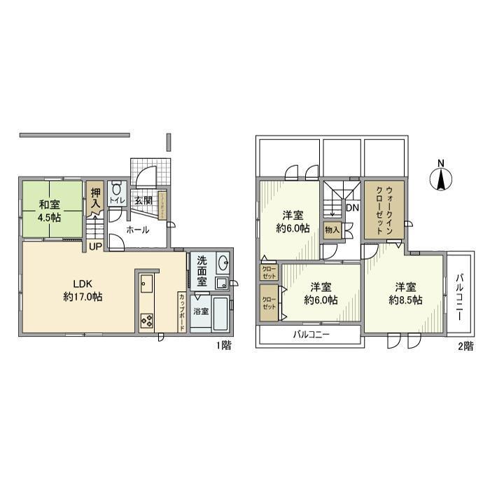 | 間取り詳細 | LDK(17帖)、洋室(6帖)、洋室(6帖)、洋室(8.5帖)、和室(4.5帖) | ||