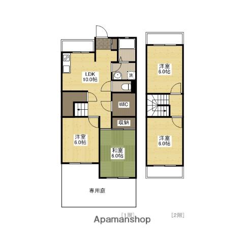 | 設備 | バス・トイレ別、テレビドアホン、温水洗浄便座、角部屋、バルコニー、シャワー、専用庭、給湯、洗濯機:室内 | ||