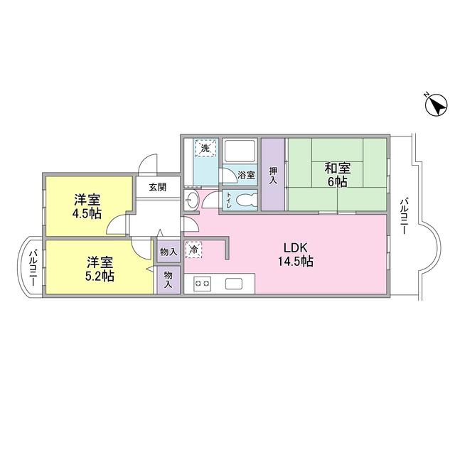 | 間取り詳細 | LDK(14.5帖)、和室(6帖)、洋室(5.2帖)、洋室(4.5帖) | ||