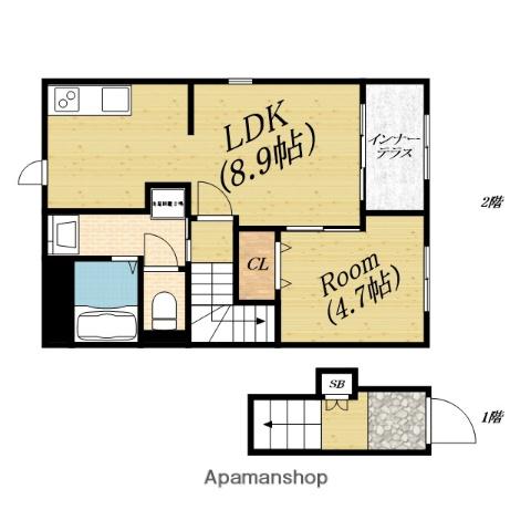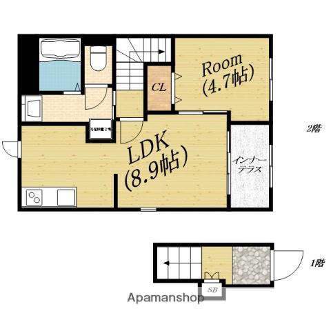 | 間取り詳細 | LDK(8.9帖)、洋室(4.7帖) | ||