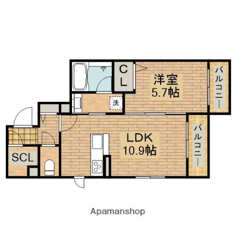 | 間取り詳細 | LDK(10.9帖)、洋室(5.7帖) | ||