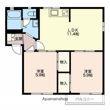 | 間取り詳細 | LDK(11.4帖)、洋室(5.9帖)、洋室(5.9帖) | ||