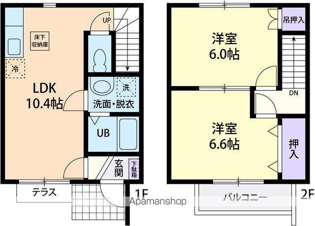 | 契約備考 | 巡回管理 合計8.97万円(内訳:鍵費用16500円/あんしんパック22000円/24時間サポート優待サービス26400円/協力費24800円) ※法人契約は別途保証金、礼金を申し受けます。※1年未満での退去の際は短期違約金が発生致します。※ペット飼育の場合、別途礼金20,000円を申し受けます。、システム手数料1100円/月、家財保険1100円/月 2LDK 単身者可/二人入居可/子供可/ペット相談/事務所利用不可/ルームシェア相談 普通借家2年 損保【要】 バストイレ別、バルコニー、エアコン、ガスコンロ対応、クロゼット、フローリング、TVインターホン、室内洗濯置、シューズボックス、南向き、追焚機能浴室、角住戸、温水洗浄便座、洗面所独立、洗面化粧台、駐輪場、ペット相談、全居室洋室、保証人不要、2沿線利用可、専用庭、エアコン2台、メゾネット、キッチンに窓、床下収納、保証金不要、2×4工法、ルームシェア相談、学生相談、外壁サイディング、上階無し、敷地内ごみ置き場、全居室6畳以上、プロパンガス、洗面所にドア、BS、敷金・礼金不要、初期費用カード決済可 入居日:'26年3月中旬 | ||