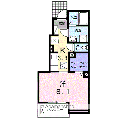 | 間取り詳細 | K(3.3帖)、洋室(8.1帖) | ||