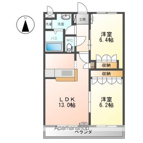 | 間取り詳細 | LDK(13帖)、洋室(6.4帖)、洋室(6.2帖) | ||