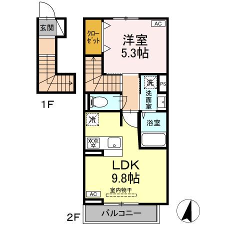 | 間取り詳細 | LDK(9.8帖)、洋室(5.3帖) | ||