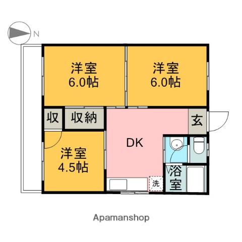 | 間取り | 3DK | 専有面積 | 44m2 |