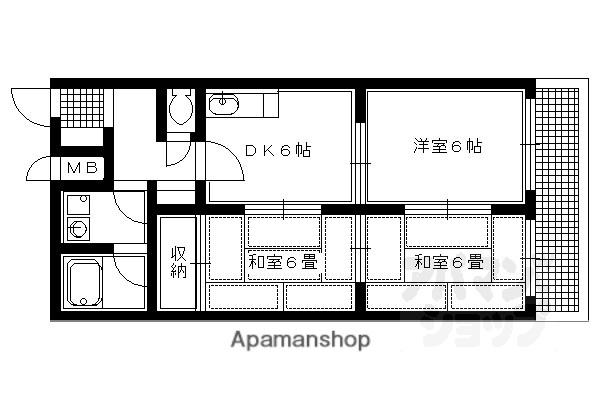 | 間取り詳細 | DK(6帖)、洋室(6帖)、和室(6帖)、和室(6帖) | ||