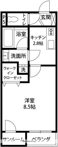 | 間取り詳細 | 洋室(8.5帖)、K(3帖) | ||
