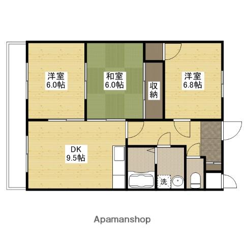 | 間取り詳細 | DK(9.5帖)、洋室(6.8帖)、洋室(6帖)、和室(6帖) | ||