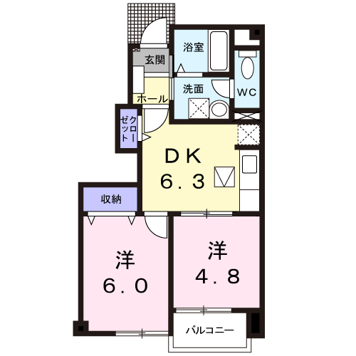 アパート サンロードD(2K/1階) | |||||||