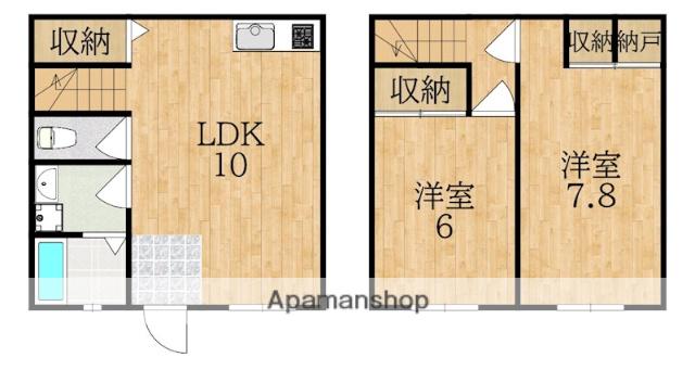 | 間取り詳細 | LDK(10帖)、洋室(7.8帖)、洋室(6帖) | ||