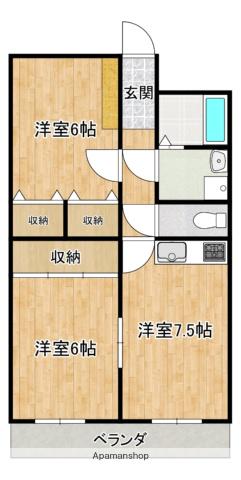 | 間取り詳細 | DK(7.5帖)、洋室(6帖)、和室(6帖) | ||