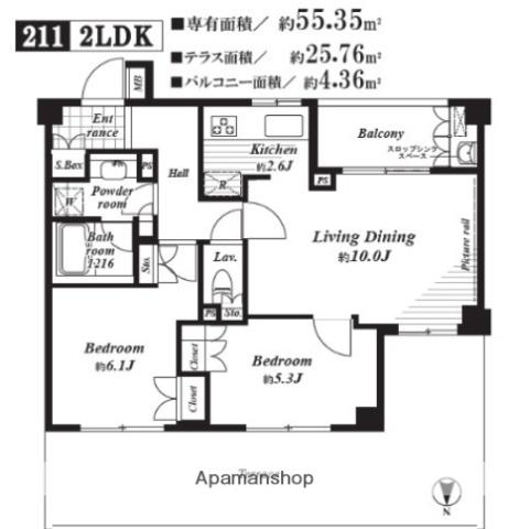 | 間取り | 2LDK | 専有面積 | 55.35m2 |