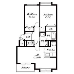 | 間取り | 2LDK | 専有面積 | 56.46m2 |