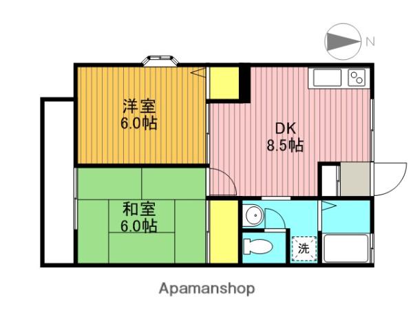 | 間取り詳細 | 洋室(6帖)、和室(6帖)、DK(8.5帖) | ||